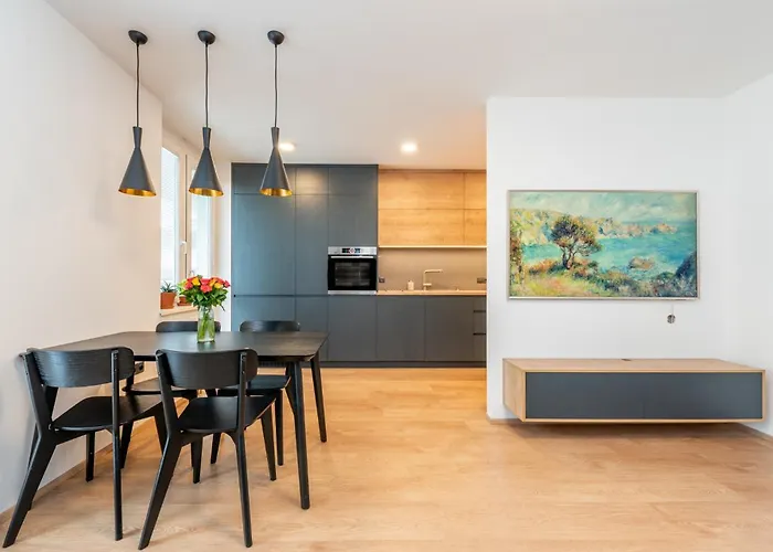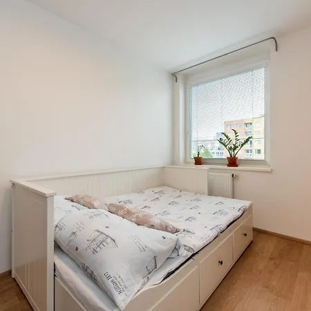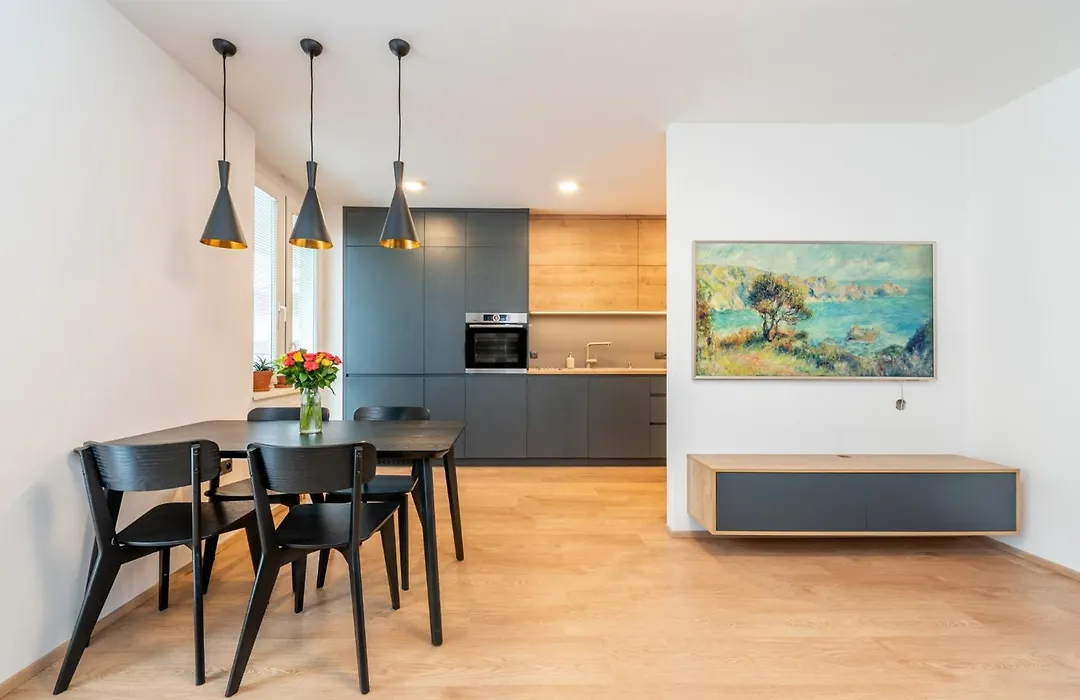 Daire tam donanımlı mutfağa sahiptir. Kodymova otobüs durağı, tesise 300 metre uzaklıkta ve Hurka metro istasyonu 5 dakikalık yürüme mesafesinde olup, bu dairenin şehri gezmek için mükemmel bir yer olmasını sağlar.